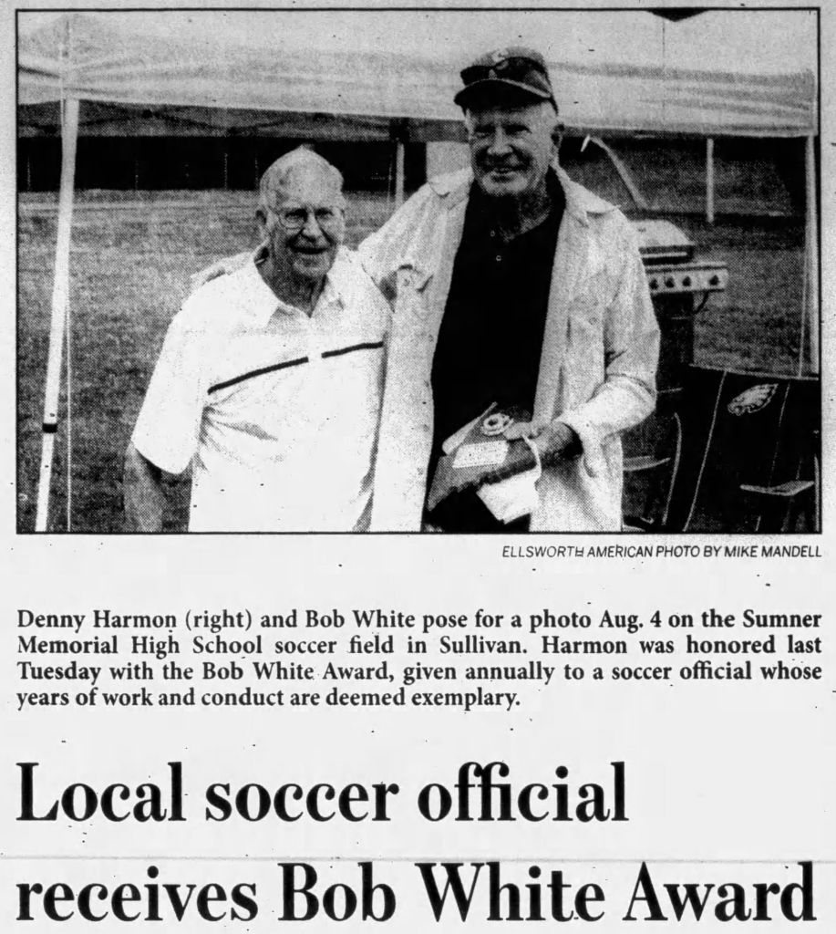 “Bob White was an iconic figure in Maine athletics, primarily known for his highly respected career as a soccer official and educator, dedicating over four decades to the sport. A lifelong resident of Caribou, he was instrumental in establishing the officiating community in Northern Maine. In 1962, he helped establish the Aroostook County Board of Soccer Officials. He was a charter member of the Northern Maine Board of Approved Soccer Officials and served as the State Rules Interpreter for the Maine Association of Soccer Officials for 28 years. His expertise led him to officiate a record number of state championship games. After graduating from Springfield College, he taught Physical Education, Swimming, and Driver Education at the Limestone School Department from 1965 until his retirement in 1991. He was a respected community leader in Caribou, known for his work with the Little League Baseball program, and the Bob White Soccer Field in Caribou is named in his honor. He received numerous accolades for his service and dedication, including: