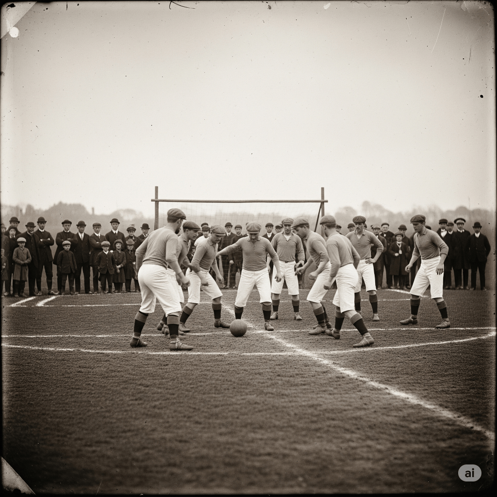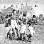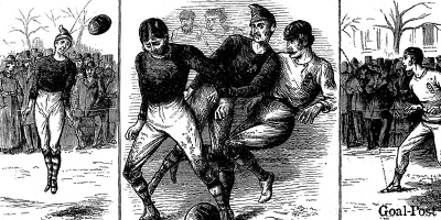 Drawing of what a soccer match in the late 1800s might have looked like.